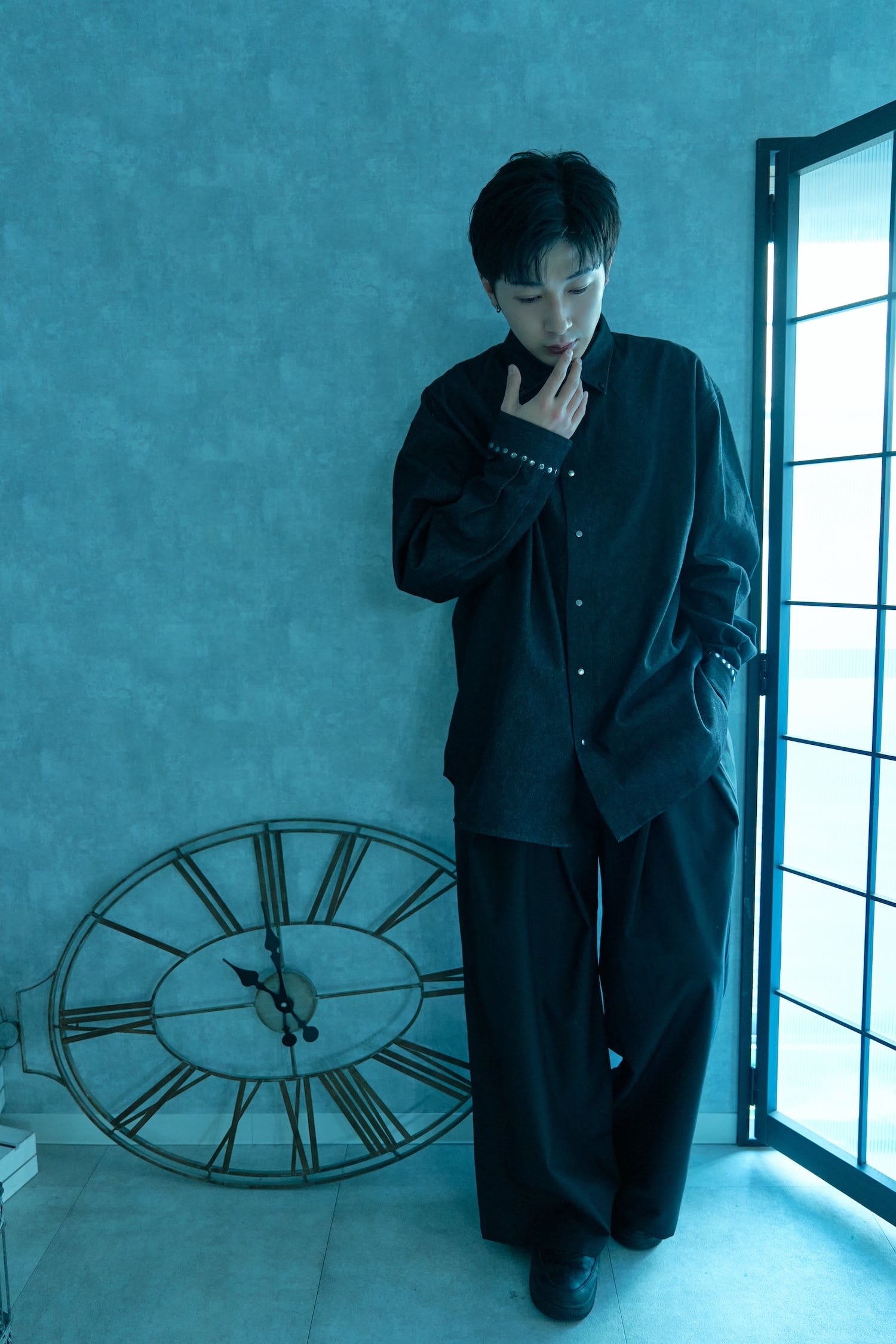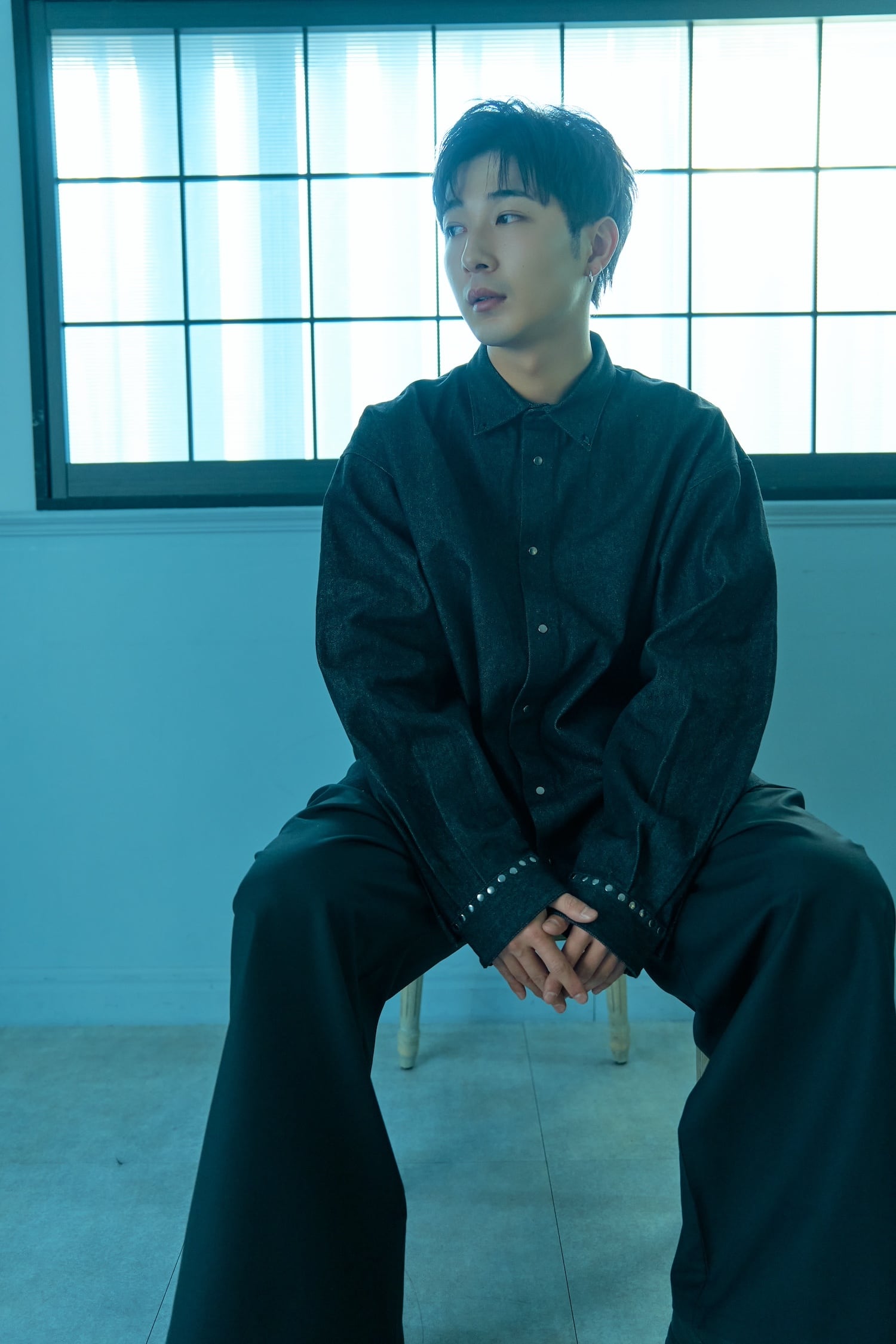 スタッズカフスデニムシャツ / BLACK